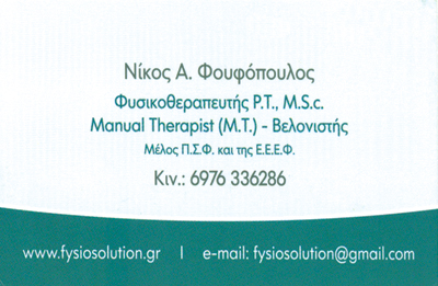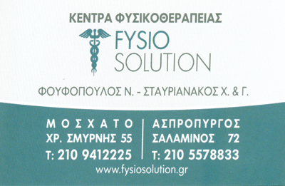 Με γνώμονα την εξαιρετική γνώση της ανατομίας και την 20ετή εμπειρία στο χώρο της Φυσικοθεραπείας, στα Κέντρα Φυσικοθεραπείας Fysiosolution, αντιμετωπίζουμε άμεσα τα μυοσκελετικά προβλήματα. Εξειδικευμένες δια των χειρών τεχνικές θεραπείας (manual therapy), συναντούν μηχανήματα προηγμένης τεχνολογίας και μέσω της σωστής διαφορικής διάγνωσης και της ολιστικής προσέγγισης των ασθενών, επιτυγχάνουμε την ταχύτερη αποκατάσταση. Οι εξειδικευμένοι Φυσικοθεραπευτές και το επιστημονικό επιτελείο των Κέντρων Φυσικοθεραπείας Fysiosolution, βρίσκεται πάντα κοντά σας. Ενημερώνεται διαρκώς για νέες τεχνικές και νέες κατευθυντήριες οδηγίες του Παγκόσμιου Οργανισμού Υγείας, έτσι ώστε να παρέχονται θεραπείες με πλήρη επιστημονική τεκμηρίωση (evidenced based techniques). Η πρόληψη, η θεραπεία και η αποφυγή της υποτροπής είναι ο πρωταρχικός μας στόχος.