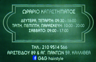 Ωράριο: Δευτέρα, Τετάρτη: 09:30-16:00Τρίτη, Πέμπτη, Παρασκευή: 10:00-20:00Σάββατο: 09:00-17:00